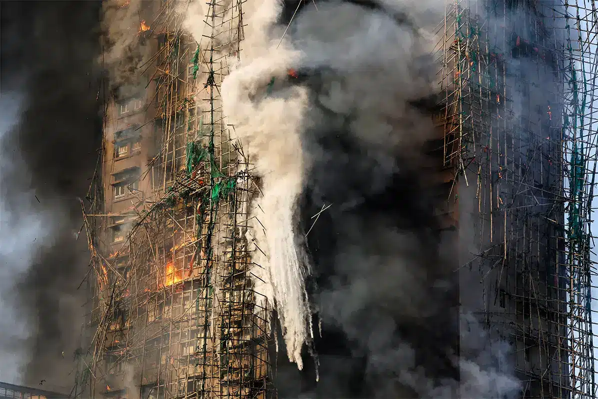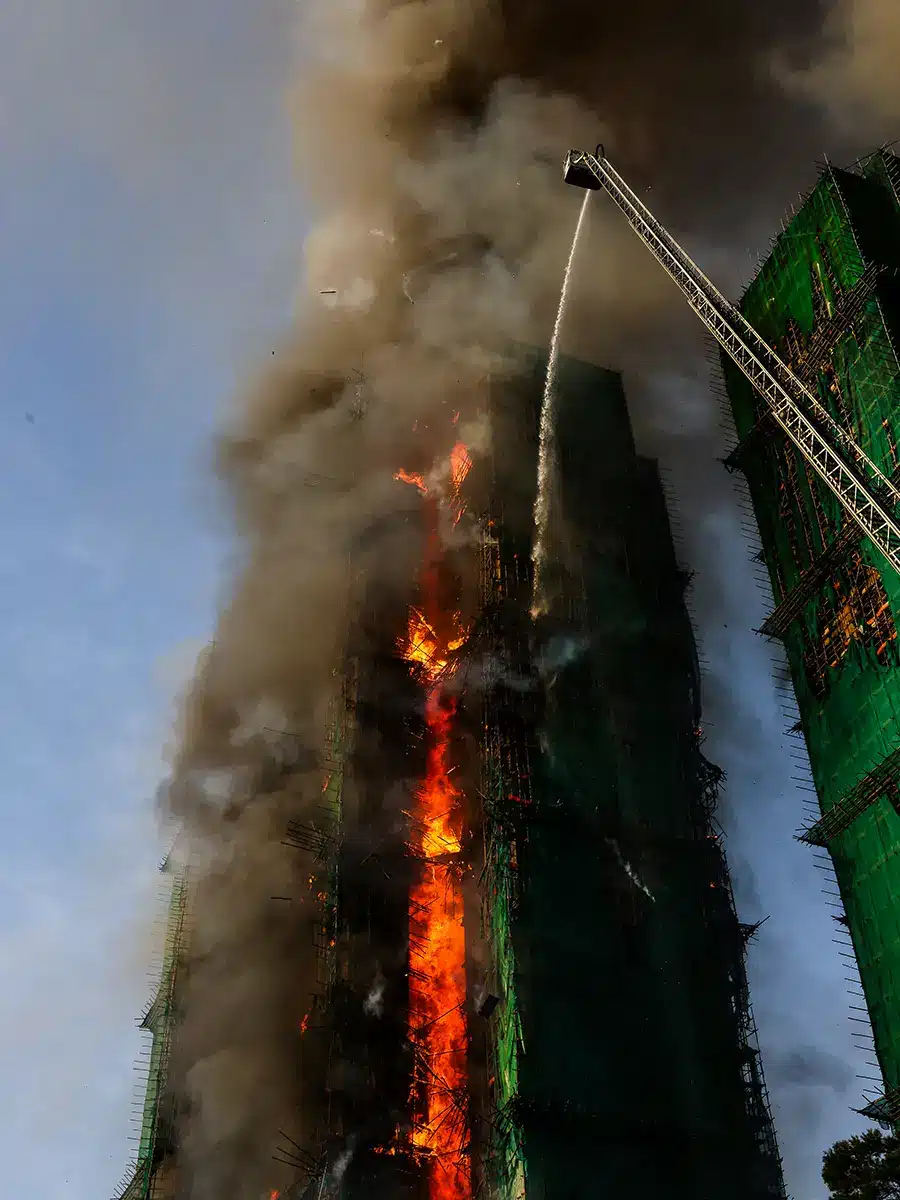 Ein von Bambusgerüsten umhüllter Hochhauskomplex mit fast 2.000 Wohnungen ist in Hongkong in Flammen aufgegangen. Die Löscharbeiten dauerten fast zwei Tage. Bis Redaktionsschluss wurden 151 Tote bestätigt, rund 30 Menschen galten noch als vermisst.