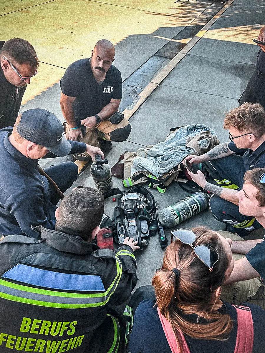 Wir bekamen eine ausführliche Einführung in das amerikanische Ausbildungssystem. Von der ersten Theorieeinheit über Simulationen von Verkehrsunfällen bis hin zu Brandübungen – alles ist darauf ausgelegt, die Feuerwehrleute auf Extremsituationen vorzubereiten. Die Ausbilder erklärten nicht nur Abläufe, sondern teilten auch persönliche Erfahrungen – Momente, in denen sie selbst ihr Können unter Beweis stellen mussten.