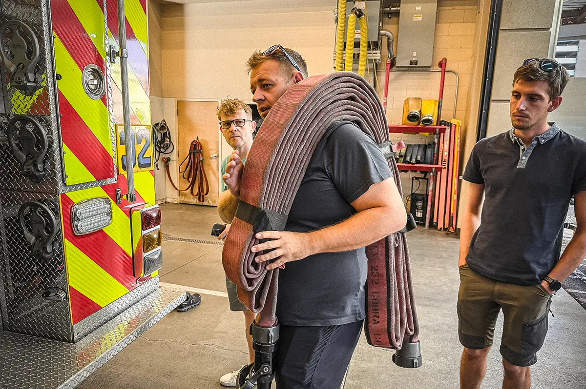 Der Captain der Feuerwache Santa Fe überraschte uns am Nachmittag mit einem besonderen Highlight: Wir durften selbst aktiv werden. Zwei Übungen standen auf dem Programm.