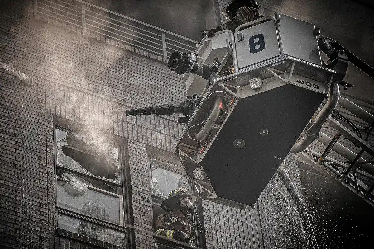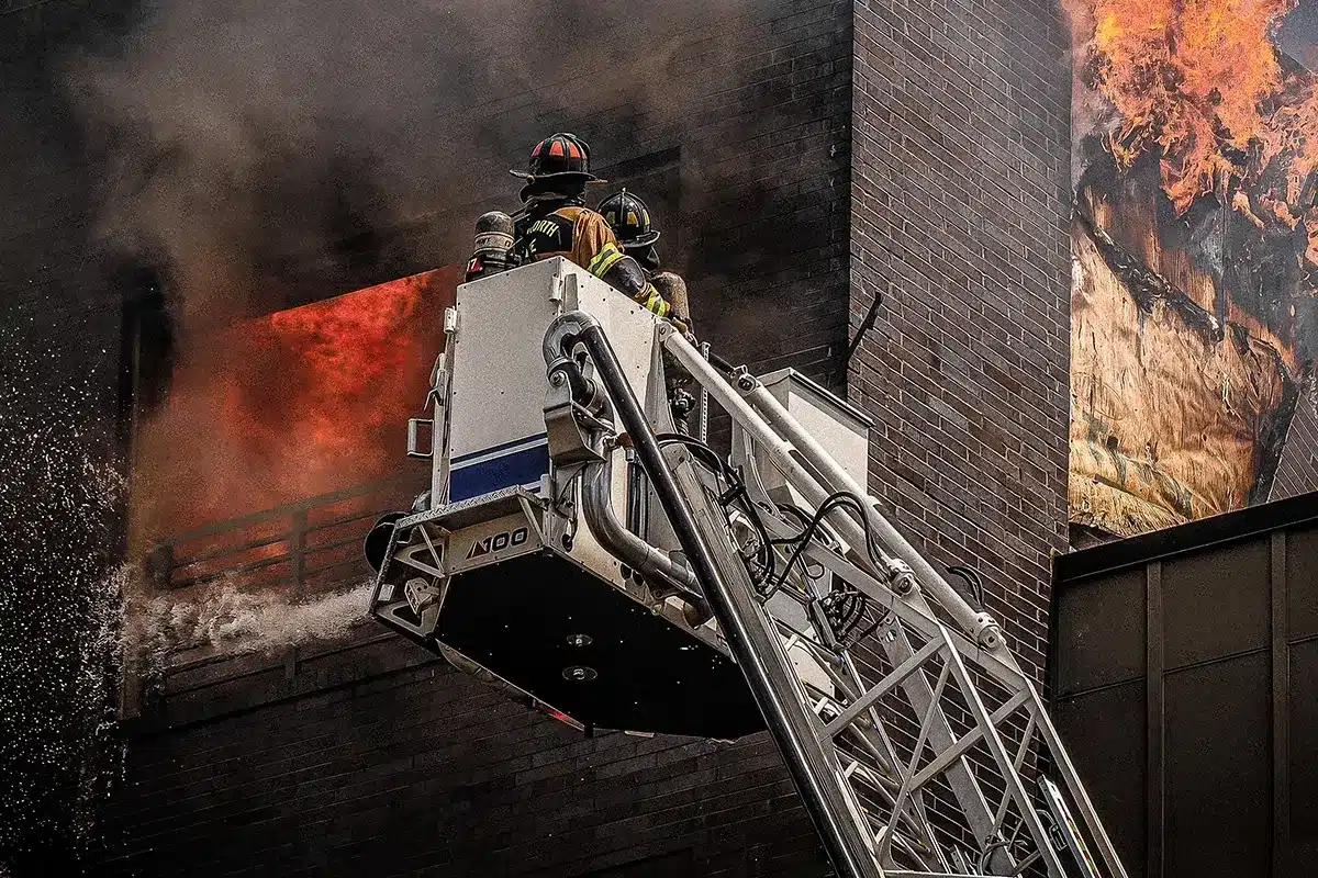 Im Dachgeschoss verschlechterte sich die Lage rapide. Hitze und Rauch nahmen dramatisch zu, das Dach begann zu arbeiten. Einsatzleiter und Feuerwehrsprecher Craig Trojacek schilderte später: „Wir mussten die Innenangriffe abbrechen, weil wir erste Anzeichen von Einsturz hatten. Sekunden danach brachen Teile des Daches tatsächlich zusammen.“