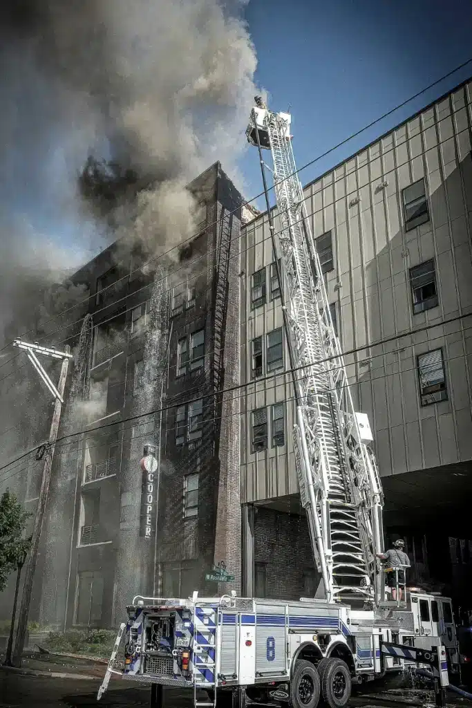 Fünf Drehleitern, tausende Liter Wasser und trotzdem kaum Wirkung: Die gummierte Dachhaut von „The Cooper“ verhinderte, dass Löschwasser die Glutnester erreichte. Feuerwehrleute kämpften mit Sägen, Trennwerkzeugen und setzten einen seltenen Trench Cut, um die Flammen einzudämmen. Dieser Einsatz verlangte Improvisation, Härte und unermüdliche Ausdauer – ein Lehrstück moderner Gebäudebrandbekämpfung.