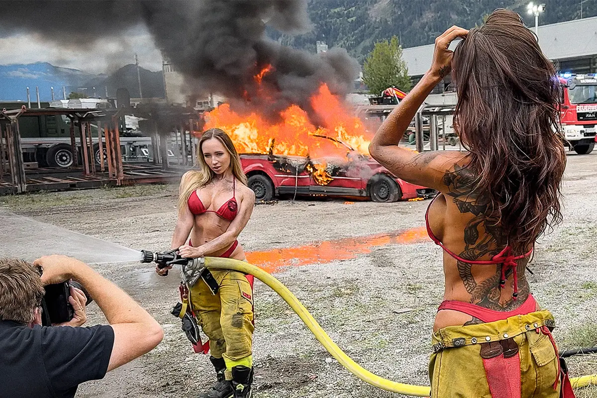 Zwei volle Tage wurde gearbeitet, geschwitzt und gelacht. Die beiden neuen FireGirls™ aus Italien und Deutschland zeigten dabei, dass sie nicht nur vor der Kamera glänzen, sondern auch den harten Bedingungen standhalten können. Rauch, Hitze, schwere Ausrüstung – alles kein Problem. „Natürlich ist es anstrengend, aber genau das macht es spannend. Man taucht komplett in die Rolle ein und vergisst alles um sich herum“, verriet uns eines der Models während einer kurzen Pause.