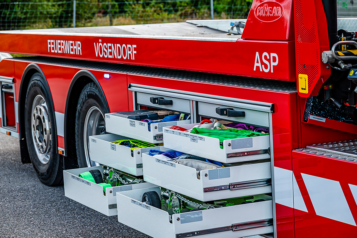 Das neue Abschleppfahrzeug erhöht mit seinen maßgeschneiderten Lösungen die Schlagkraft der Freiwilligen Feuerwehr Vösendorf im Bereich der Bergeeinsätze erheblich und ist dank modernster Technik bestens für die Zukunft gerüstet. Bereits seit der Indienststellung konnte das Fahrzeug seine Stärken bei zahlreichen Einsätzen unter Beweis stellen. Derzeit werden Schulungen und Übungen durchgeführt, um die Mannschaft optimal mit den umfangreichen Funktionen des ASP vertraut zu machen.![]()