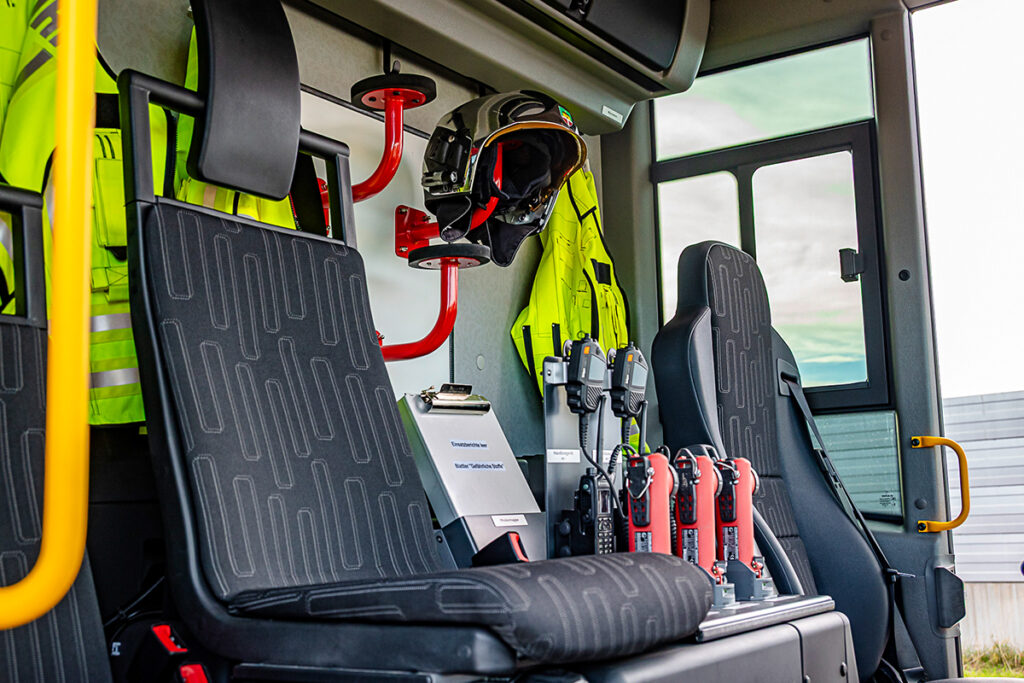 Die moderne Fahrerkabine des Mercedes-Benz Econic 2635L bietet Platz für drei Einsatzkräfte und viel Stauraum für Ausrüstung.